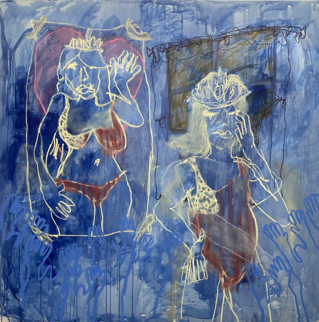 Before that, I was never using mixed media because it wasn’t the traditional thing to do, and it wasn’t until Grad school, after that semester in Italy, when I started thinking about all of the layers I was trying to address through painting and how that fell hand in hand within my own narrative. Speaking as someone who comes from a mixed background in terms of race and religion, I think it also naturally evolved into pulling all these different materials together and layering, and layering, and building these pieces without realizing at the time the connection it had with who I am and my background. I also love mixing materials that are a bit more traditional or high end with things that you wouldn’t expect, and that speaks to the parallels of adolescents and the coming of age. I have on my desk these packs of sparkles or glitter that I’m mixing with these expensive oil sticks and navigating how they can work together and what emotions that can evoke: It’s the girlhood and the womanhood in one.