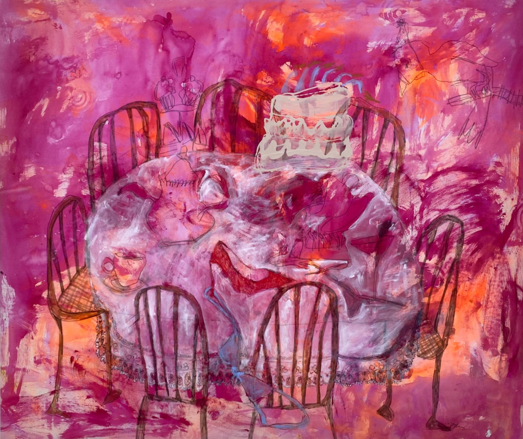 Nicole: How is the process of painting and the use of mixed media related to this narrative?