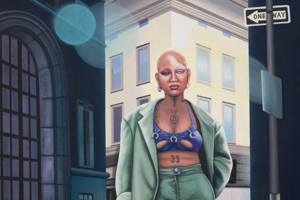 AF: I met many people I painted when I started doing New York City nightlife in the 2000s, on the fringes of the queer club kid scene. Club kid culture largely died out at that time because people saw it as more of a 90s thing, but I was part of a lingering downtown scene. I recently watched the film “I Hate New York,” which documents (several) trans people in this scene from 2007 to 2017, which is around the same time when I went to those clubs. It wasn’t until that point that I’d met anyone in my life where I was like, “Ohh, these are my people.” So I started working with people I met from those parties, and some of the people I paint now are the younger generation of that scene, an evolution. They’re doing these incredible things in queer and trans nightlife—which seems more prominent and exciting than ever.