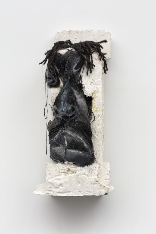 C: I guess I’ll start at the beginning, around the time I was creating these bodies of work. I came from the interest of working with family photographs. I continued that because I look at family photo albums all the time. I know a lot of people do because it’s different from looking at a digital device. It’s so nice to have something tangible. Something shot in film is so different from being shot on your phone. I look at family photo albums out of pure nostalgia and a desire to be seen as an individual that can aspire to be anything that they want to be. As I was growing into adulthood, some of the ways that I wanted to identify were not accepted or rejected. The pull and distance created in my relationships with my family were making me self-aware of not having a space of belonging. I was craving to have those things I would find in family photo albums and to investigate where they were or where they got lost over the course of time. I started to recreate them in these large-scale embroideries, which I was making in 2017. Everybody loves to look back at their pasts and at their family. Giving people access into Black family structure was something I didn’t realize I was doing at the time. When viewers would actually engage with the work, I could tell they were looking at a world they didn’t have access to before. Even crafting these domestic scenes out of fibers, using things like pillowcases, brought things home to people. They saw how familial bonds were created through families like mine with the tenderness of these relationships and how fragile they are. A fragility is presented in the bodies that aren’t represented as well. People have a level of care and can relate to those images that I make of my family. That’s what that work was about. Even now, some of those things are finding their way into the bodies I make even when I’m not directly showing something that’s pictorial in my work. People can see the humanity—I want the humanity to be present in the work in the way that I’m handling the body. There’s this reconstruction of a being from being constantly oppressed, beat down, misrepresented or projected upon in these misinformed ways. I try to correct this and shift the viewer’s eyes and show a psychological perspective. I bring that through material too, as material has its own history or it’s weathered or not polished. You can see its scarring and how those things occurred through its activities without you being present. You end up finding ways to repurpose it and reconstruct back into a form where it’s not devalued.