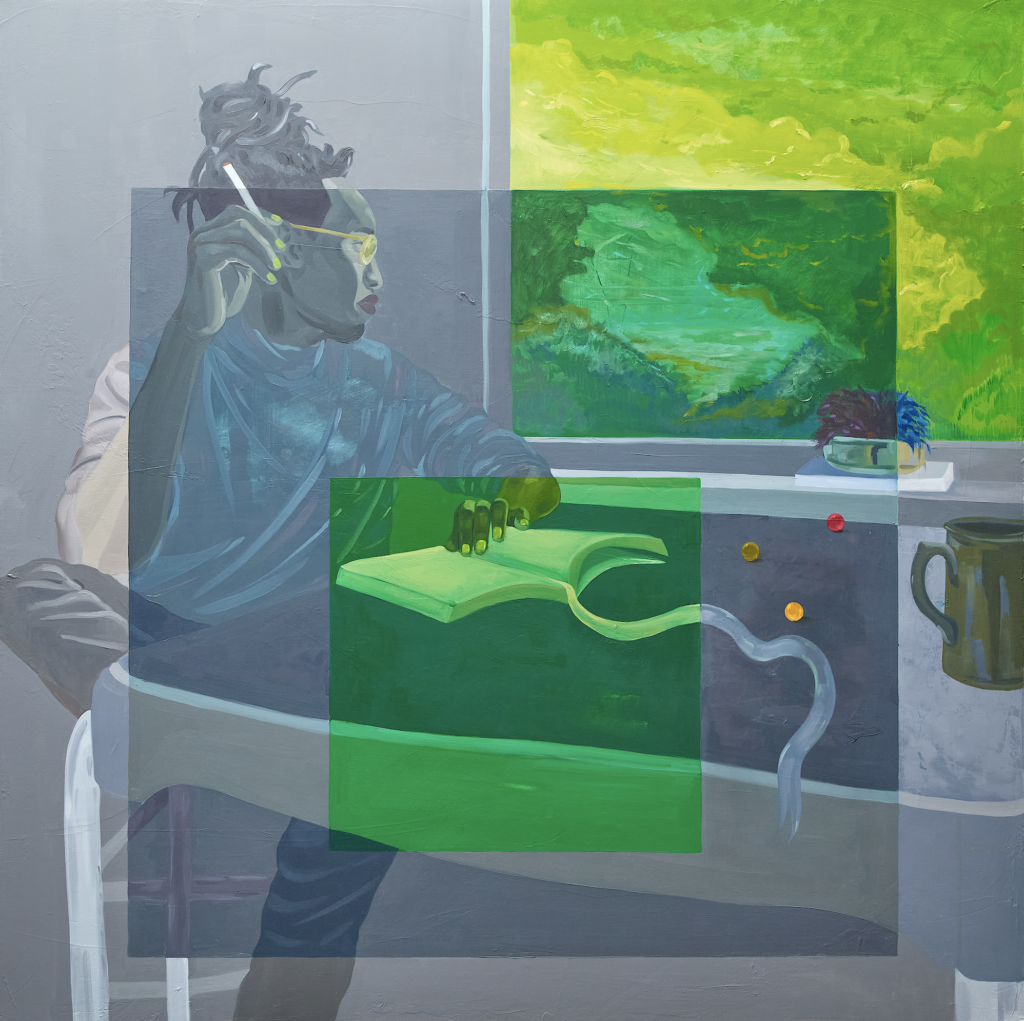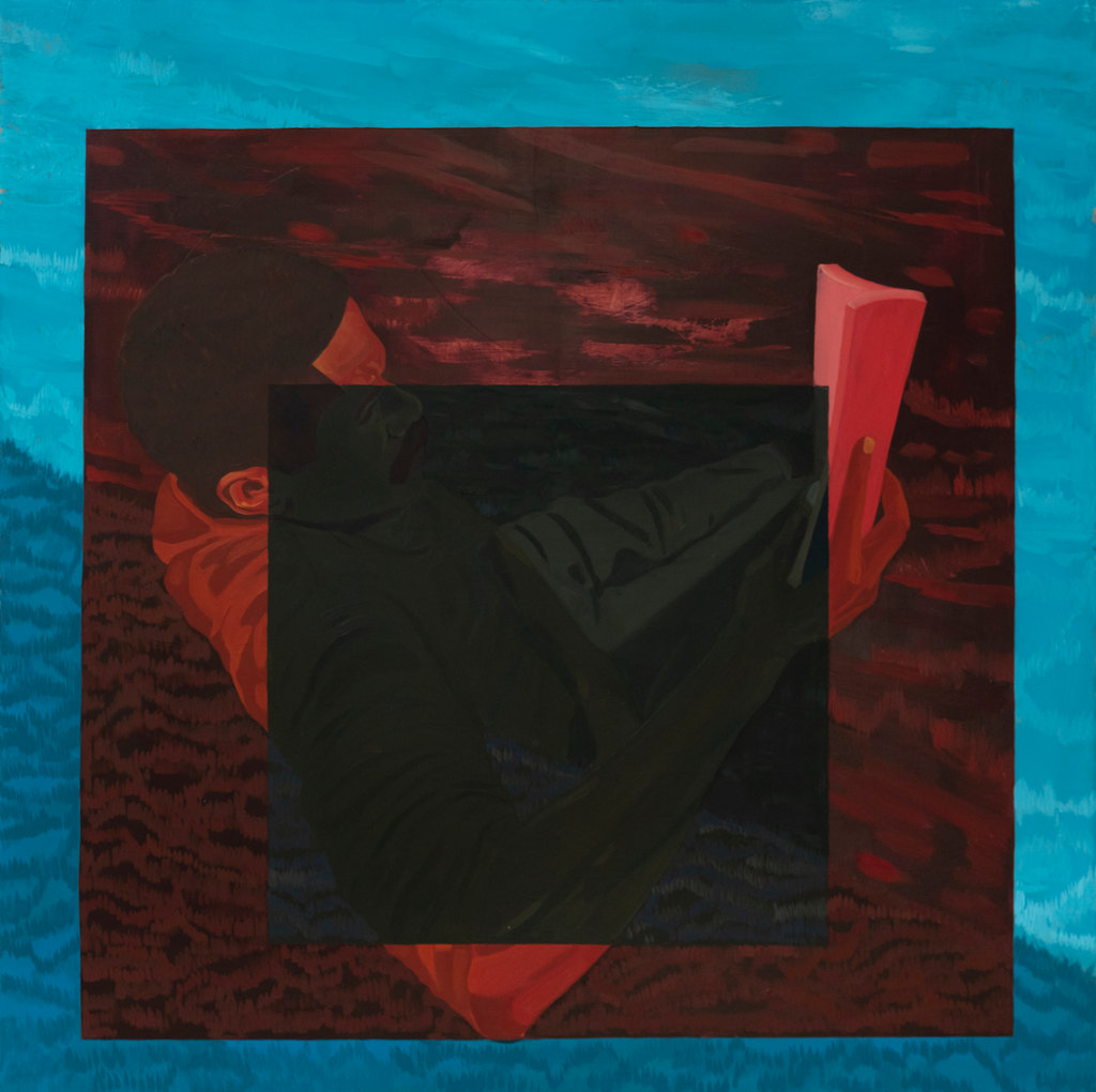 DC: When I first started painting, I took foundational courses which focused on painting from observation. While at the Milwaukee Institute of Art and Design, I made a lot of minimalist, abstract paintings. My paintings were just one color; they were all about my relationship to color. There was no image, the work was all about surface, color and very objective approaches to making a painting. As my process evolved, it made sense that the abstract elements followed me into my figurative work, even if you consider my relationship to the color in my current paintings. It’s certainly a byproduct of my past investigations and love for color and color theory. I understand I can capture a color without too much fuss – I’ve been exploring color for such a long time. With regards to the After Albers series – they take inspiration from Josef Albers, the modernist painter, and his homage to the square paintings, in addition to his theories concerning color. I think that in society, we kind of treat bodies like abstractions anyway, so, for me, there was this beautiful symmetry between our bodies and what we perceive to be our identities — as our identities are contextual. Josef Albers’ investigation with color, and color being a product of relationally; Our understanding of a given color is relational. The idea is, that if you were to orient two colors next to each other, they could influence one another and consequently affect the eyes’ ability to interpret what it is that we’re looking at. The two colors can change; they could even create a third color entirely. In a way, we are like those colors and  I found that my body and my identity function very similarly. My Blackness has a particular cultural and social specificity attached to it in the context of America. But if I were to go to Africa, my body would be read in a very different way; because the racial logics and paradigms are different. Art historically, that’s where I was pulling from, but merging the concerns and examinations of Josef Albers’ objective exploration of color relationships with the contemporary concerns surrounding identity politics that we’re all currently negotiating.
