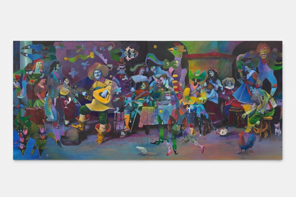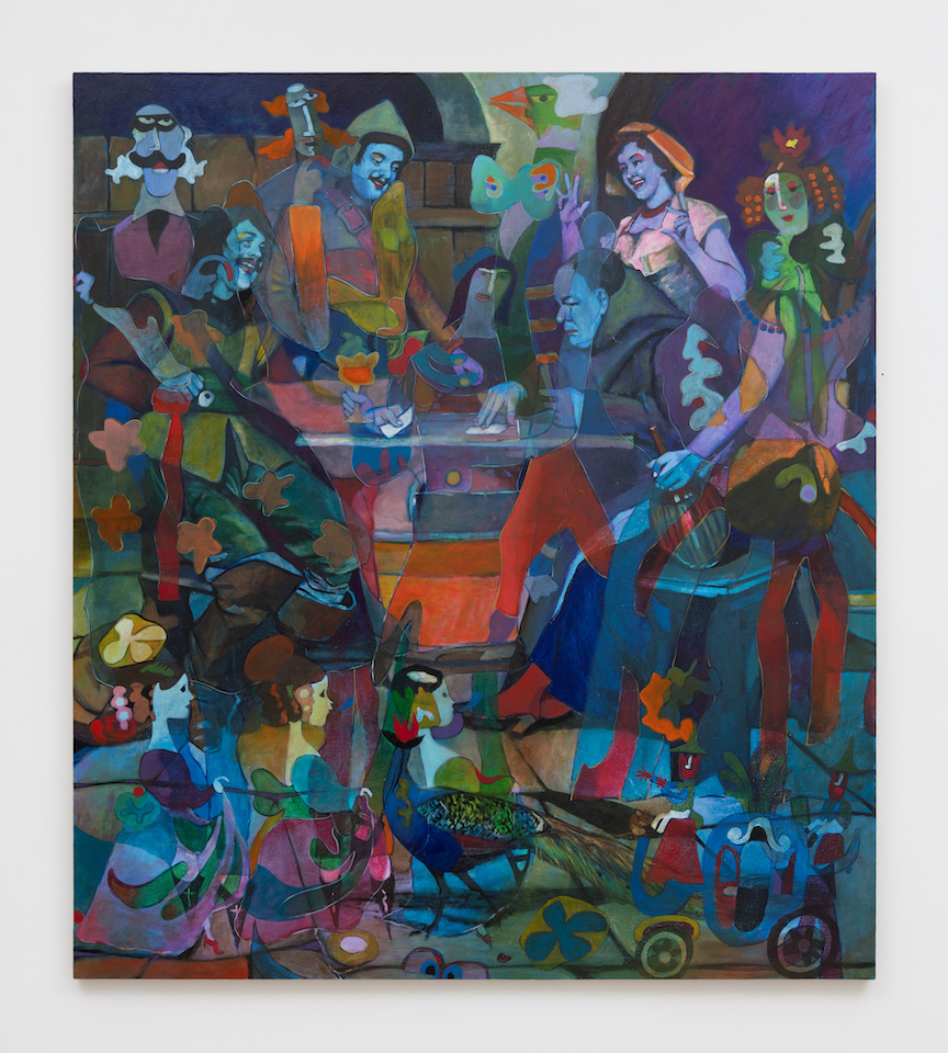 JP: That’s right. And my last show at Anat Egbi was called ‘Tambourine’. That’s because they are about music and I think paintings can be heard like a ‘moment of still music’ somehow. I suppose I view myself as an ‘art Bard’ in some way. Shakespeare was a Bard. Bob Dylan is a Bard. A Bard is all about sharing stories about the human condition and then people hear the stories and retell those stories and so on. The literal embodiment of passing time through song and story. The Bard is akin to the fool in terms of historical work. It’s a character that can reveal universal truths while also making fun of the king and the absurdity of the system. I like Bards.