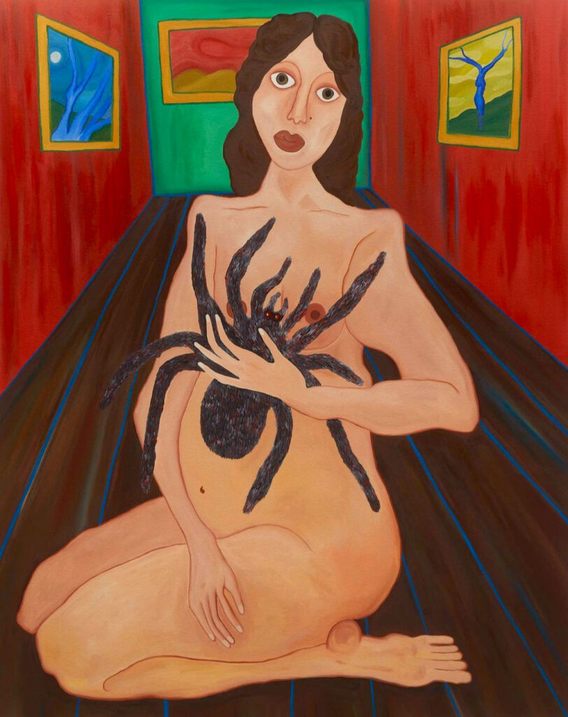 Mickey Lee, Arachnid Embrace, oil on canvas, 48 x 36 in, 2023.
