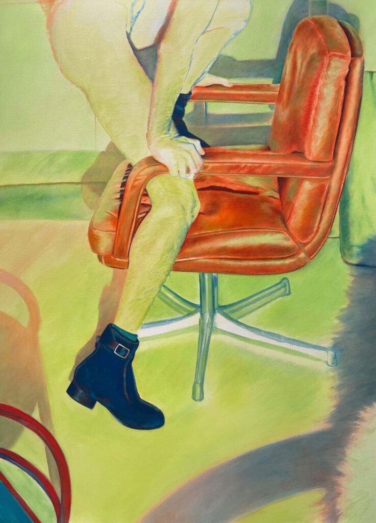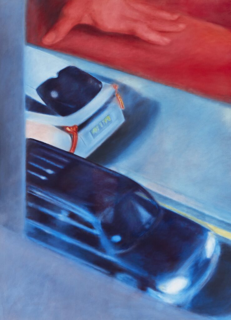 Today I’m most excited about the element of time in painting, which is perceived as much more permanent than, for example, a freeze frame from a film or a photograph. Bringing in the logic of a slippage of a moment (the wrong frame, rather than the climactic moment itself), as well as incorporating other elements like sound, shifts the viewer’s perception of time and space within the work and away from more traditional conventions of the medium.