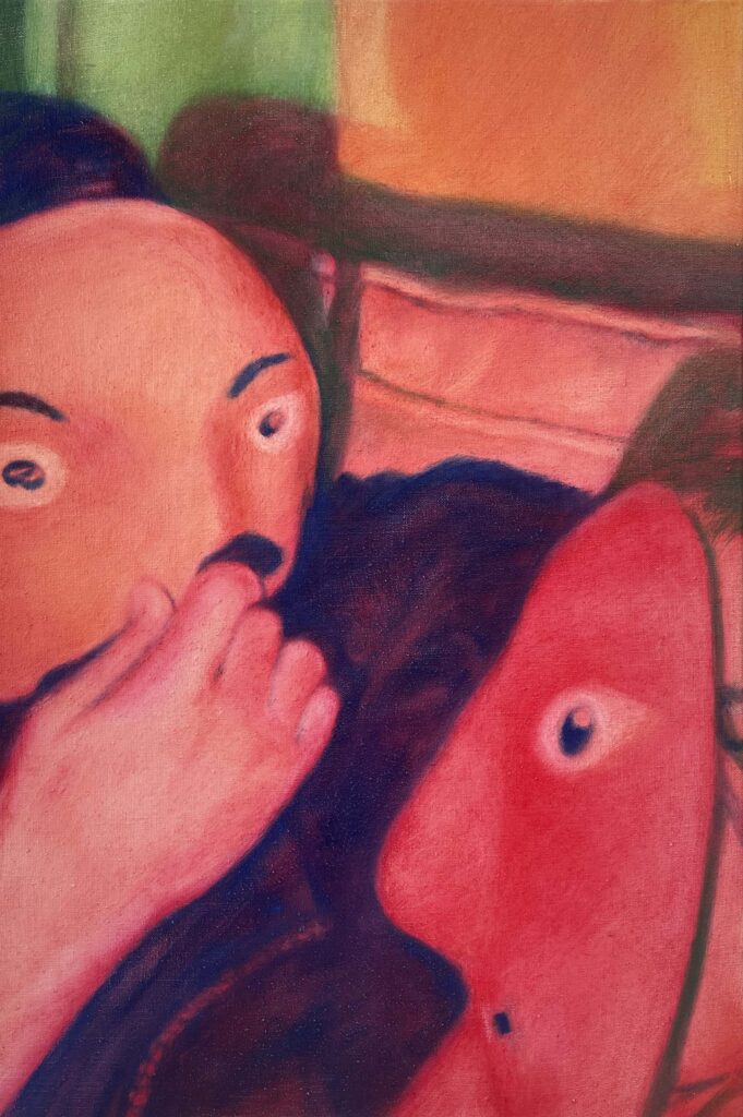 Nana Wolke, Yo, are you ok bro?, 2021. Oil and sand on linen. 24 x 16 inches (60 x 40 cm). © Nana Wolke.