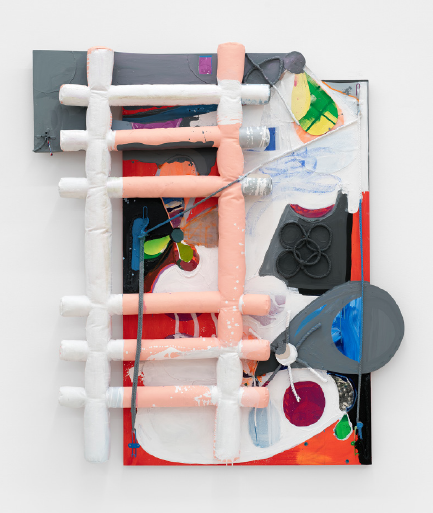 REW: It’s a really hard question because some of the works feel so sculptural and others feel much more like painting, so there’s moments where I’m thinking of them as paintings and sometimes I’m thinking of them more as sculptures. For me, I find it really interesting that the canvas and the rope have the same properties – I use them together and there’s a transformation of what the canvas does and how it reacts gesso and paint and it all becomes one. I love the way that I’m looking at this canvas and I’m thinking of it as the fabric that it is and how I can sew it and move it around, playing with its physical properties. So I think that’s kind of where the painting and the sculpture are going in each other’s circles because the line becomes the rope and that’s sculptural, but it’s still a line within this painting.