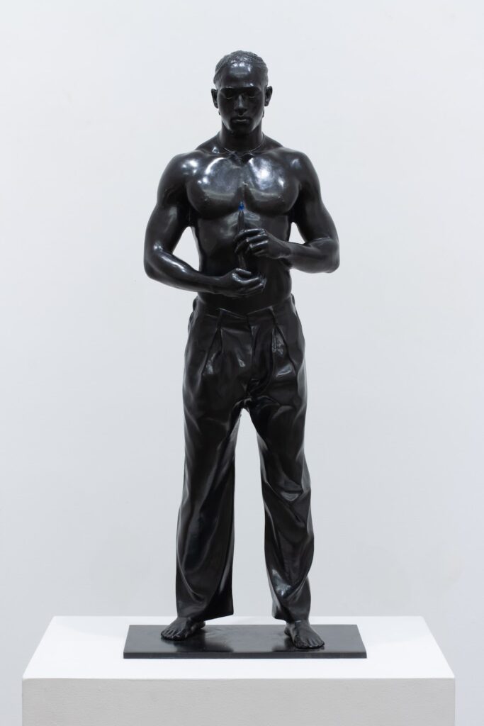 NB: Then there’s also such a rich art historical narrative with blue and how that has manifested its way from ancient times through to the indigo plantations of the South and through art history. When you look at the blues in Rashid Johnson’s anxious men, there’s the Hauntology of the past in his anxious men work, which connects to the blue bead in your work, “Blue Shadow”.